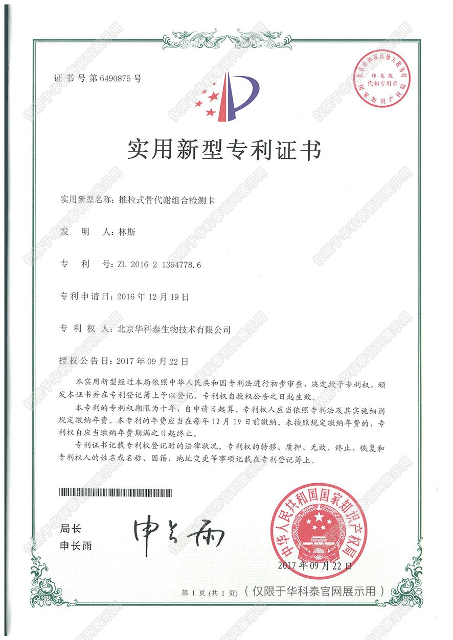 实用新型-推拉式 骨代谢组合检测卡